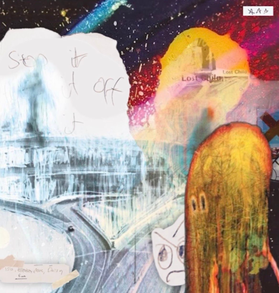 Releitura da capa do álbum “OK Computer” (1997), de autoria de Stanley Donwood e Thom Yorke, feita por estudantes da Cheney School para a exposição “This Is What You Get” (2025) do Ashmolean Museum. Reprodução: Instagram (@ashmoleanmuseum).