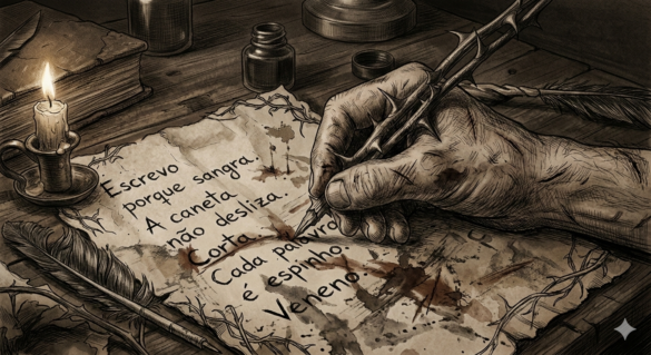 Caneta de Espinhos Escrevo porque sangra. A caneta não desliza. Corta. Cada palavra é espinho. Veneno. ...