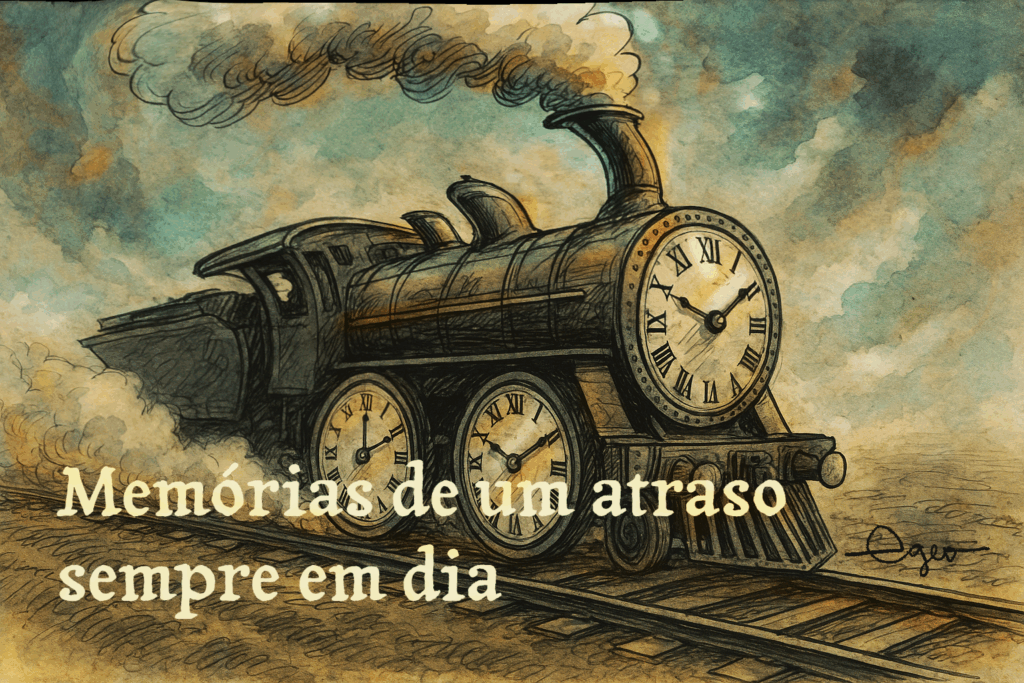 Recordações em cores desbotadas, como as de um arco íris lavado a seco num improvável dia de sol londrino, se empilhavam como papéis na mesa do general burocrata da era do chumbo, que teima retornar em toda a truculência porque as lições dos porões não foram passadas a limpo. Já não era possível distinguir as primeiras das últimas, tão mesclados estavam os tempos, como uma roda da fortuna girando anti-horário. Numa banca de jornais, das que só vendem balas, doces e brinquedos baratos, a última edição não exibia data, porque isso não importa mais e as notícias são intercambiáveis no tempo e no espaço. Globalização, pensaria, não fosse o som estridente do apito do trem, que não chegava e nem partia. Comprou um jornal e, ao abri-lo, deparou com um anúncio do Ford Corcel 73, cor de mel, como o do Marcos Valle! Afinal, quando estamos aonde? O trem não passou. E tampouco parou.